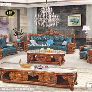 Wooden Sofa Set Wooden Brown Leather Furniture Set No-11140 Maharaja Wooden Sofa Set
