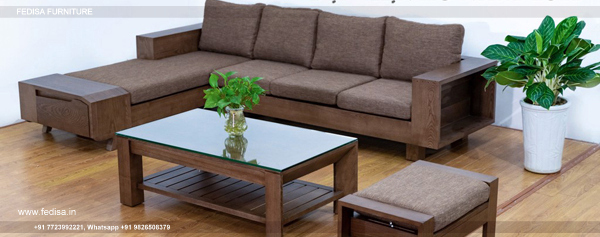 Sofa Set Wooden 5 Seater Wooden Sofa Set With Removable Cushions L Shape Sofa In Teak Wood Small Size Wooden Sofa Set